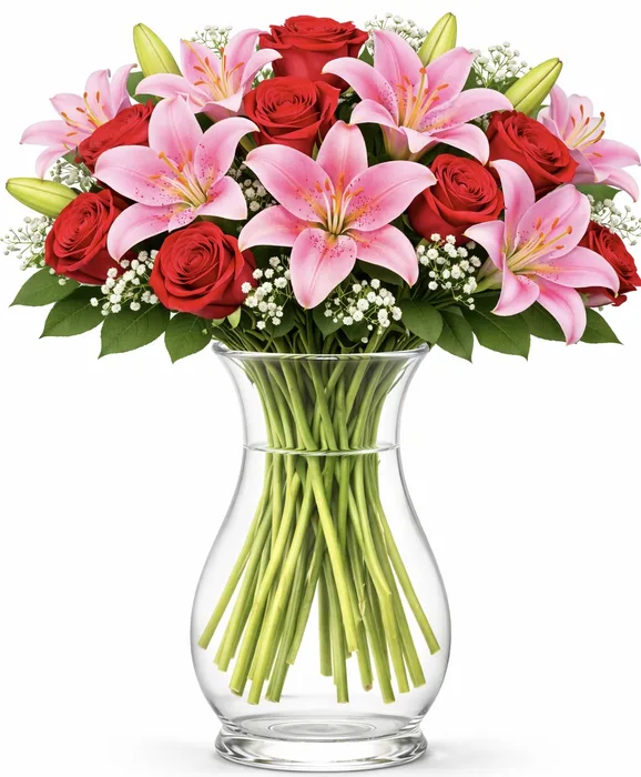 זר ורדים וליליות. לבחירת צבע וגודל. החל מ-219 ש"ח.