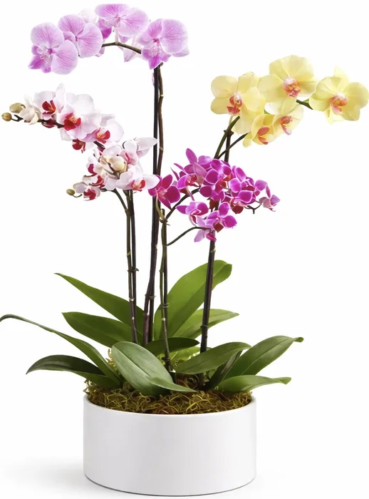 סט 4 ענפים סחלבים בכלי קרמיקה.