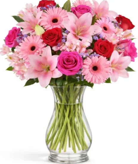 זר ורדים אדומים וורודים. גרברות, לילות. אלסטרומטריה: