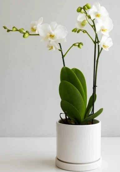 סחלב לבן בכלי קרמיקה. גובה 50-60 ס"מ
