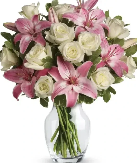 זר ליליות וורדים לבנים. החל מ-249 ש"ח