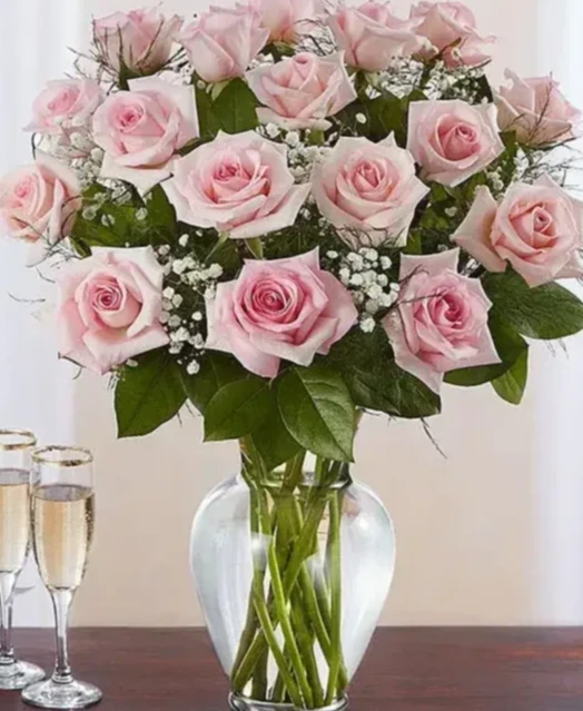 זר ורדים ורודים וגיבסנית. החל מ-219 ש"ח