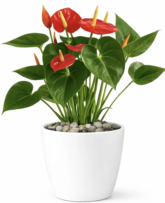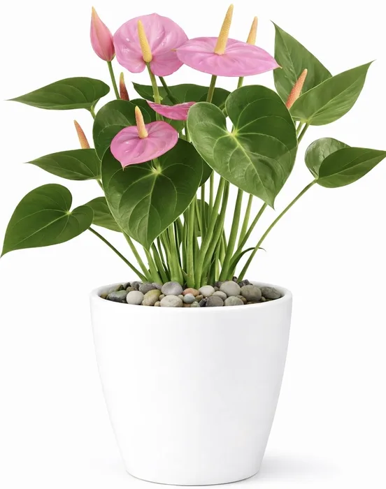 עציץ אנטוריום בכלי קרמיקה.