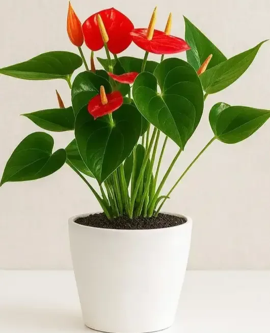 אנטוריום אדום בכלי קרמיקה. גדלים S-L