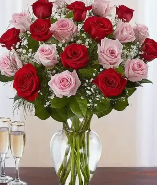 זר ורדים אדומים וורודים. החל מ-239 ש"ח.
